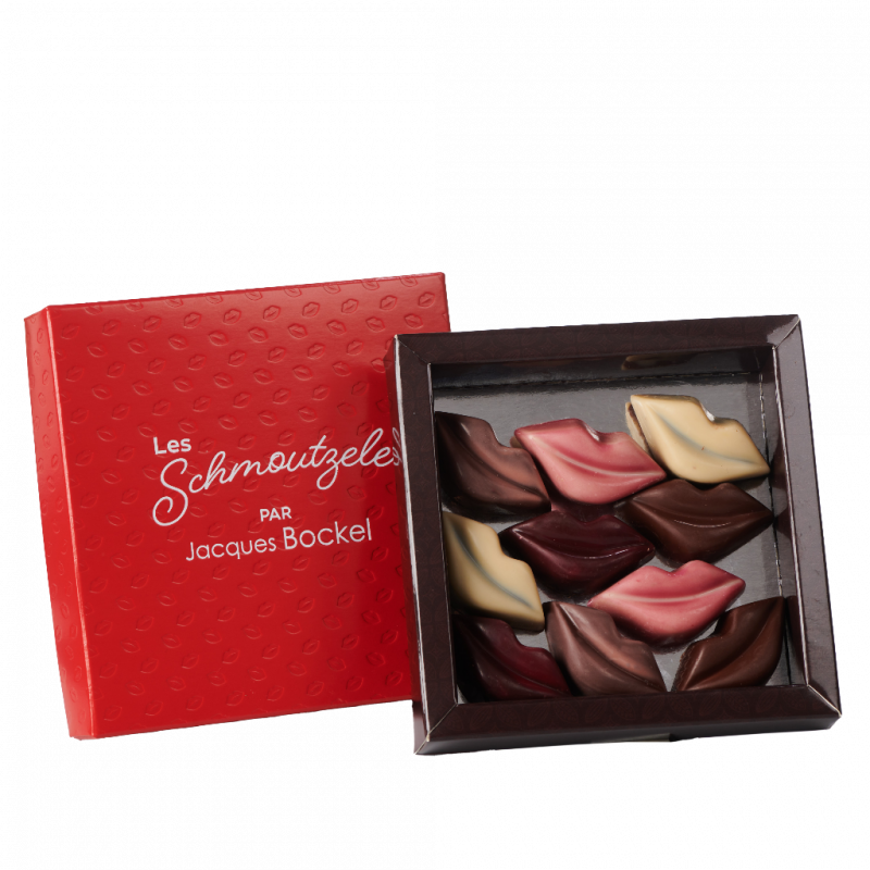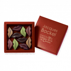 Ingrédients enrobage noir: Chocolat Noir (masse de cacao, sucre, beurre de cacao, émulsifiant : lécithine de SOJA (E322), vanille arômes naturels), Chocolat Lait (sucre, poudre de LAIT entier, beurre de cacao, pâte de cacao, émulsifiant: lécithine de SOJA (E322), vanille arômes naturels.), Chocolat Blanc (sucre, beurre de cacao, lécithine de SOJA, vanille arômes naturels.).